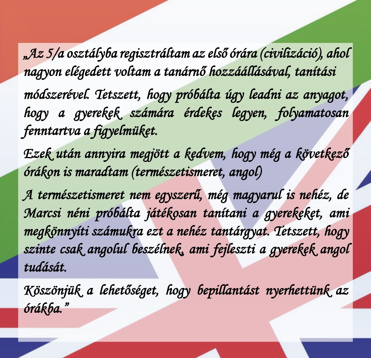 2026. március 30-án megmérettetésen vettünk részt Csornán, a II. Rákóczi Ferenc Óvoda és Általános Iskola által szervezett “English is fun” nevű angol versenyen. Intézményünket összesen négy csapat képviselte. A 8. osztályosok közül a Vadas Zoé és Váradi Ákos alkotta páros kiemelkedő teljesítményt nyújtott, és a rangos 2. helyezést szerezte meg. A többi csapatunk is nagyon szépen helytállt, mindenki ügyesen és lelkesen versenyzett. Büszkék vagyunk valamennyi résztvevőre!