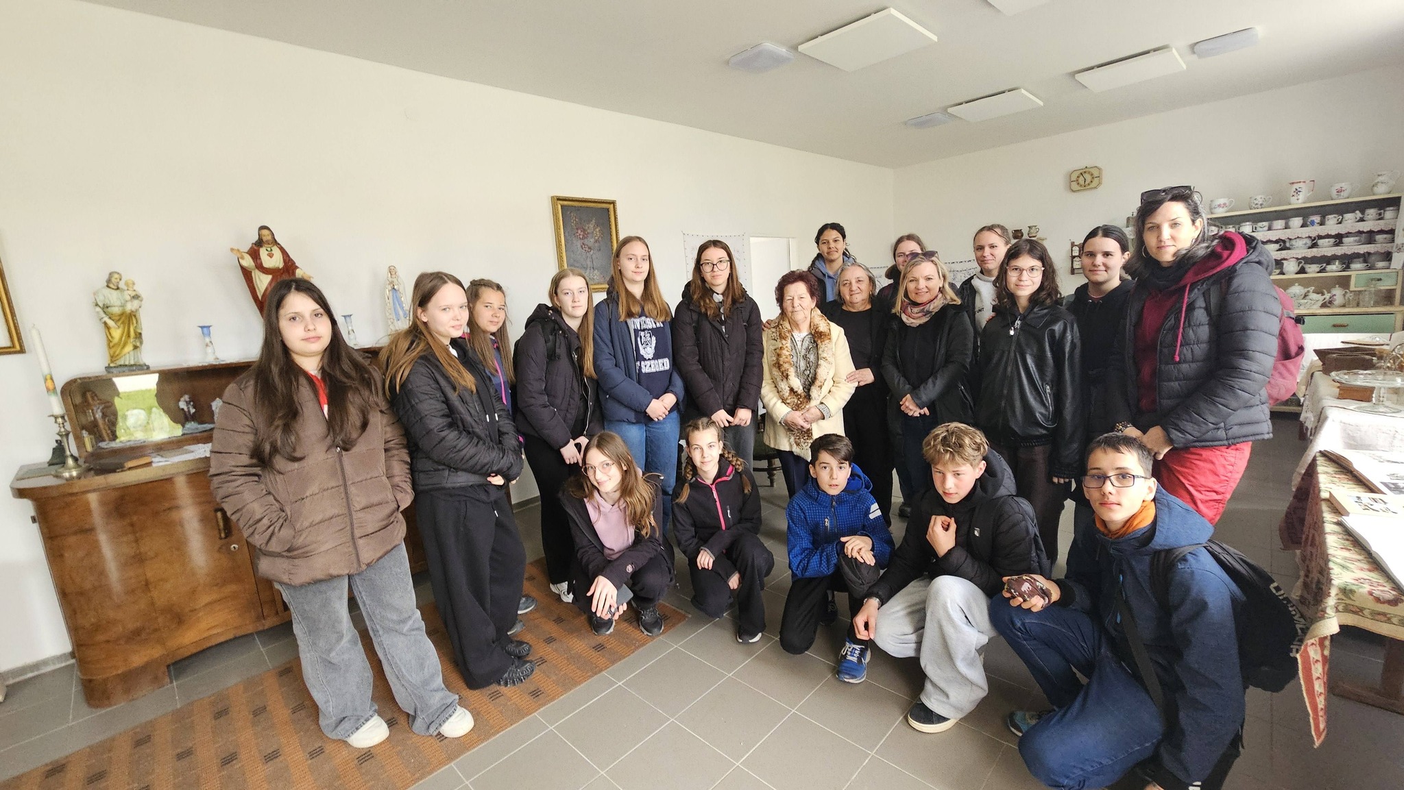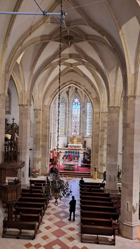 Reggeli frissítő séta után a Deáki római katolikus templomot látogattuk meg, amelynek egyik nevezetessége, hogy a 19. században itt került elő a Halotti beszédet tartalmazó Pray-kódex. Részletes beszámolót hallgathattunk meg a templom történetéről, majd felmehettünk a háromhajós műemléktemplom tetőterébe is. Ide vonultak egykor elmélkedni a bencés szerzetesek is, napjainkban itt őrzik az értékes egyházi ereklyéket, zászlókat és miseruhákat.