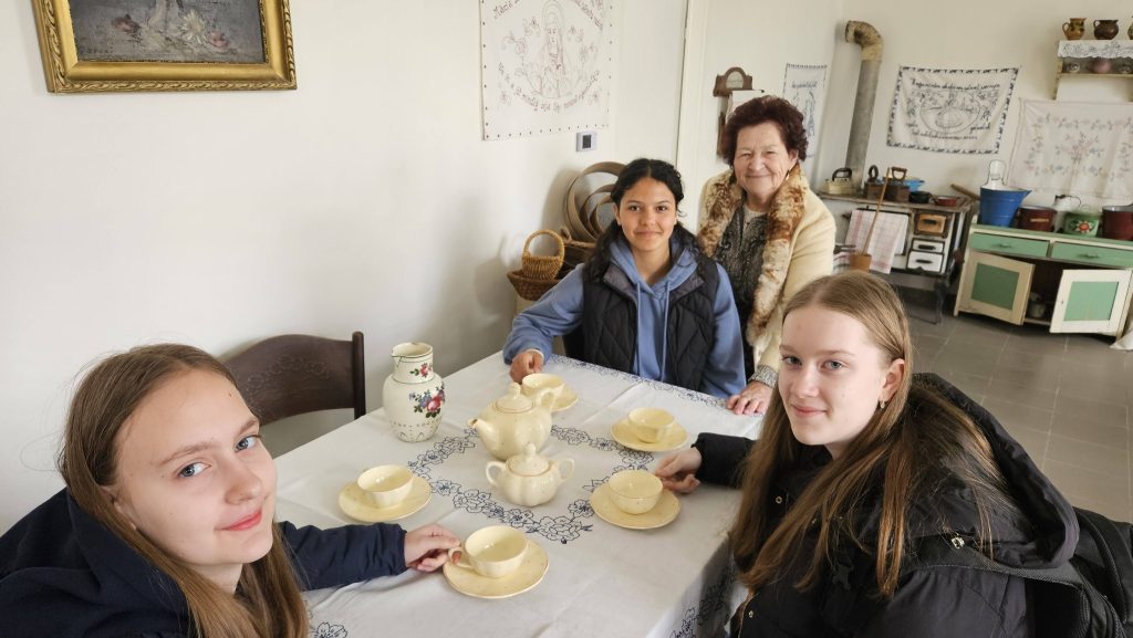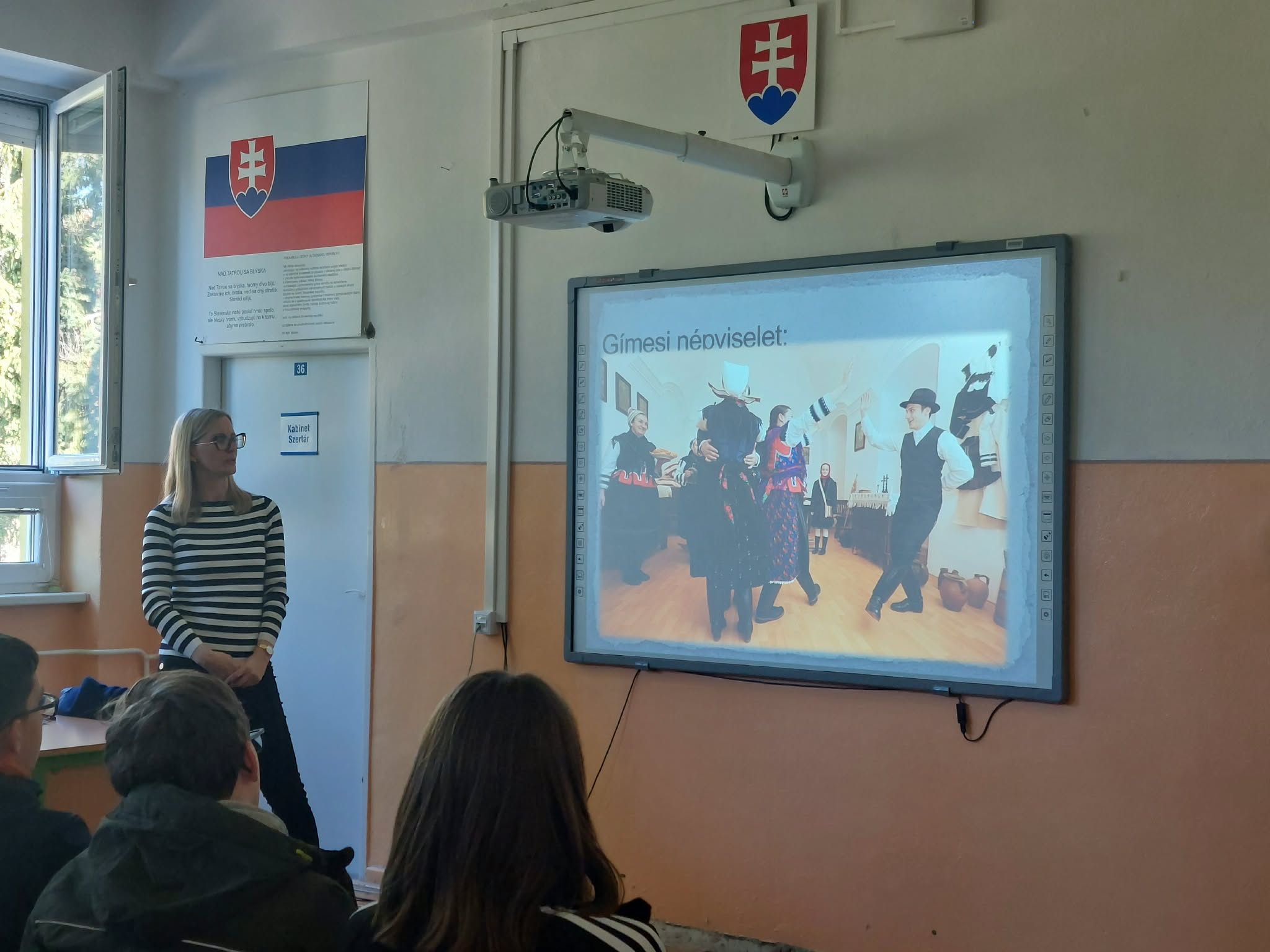 Gímesen az alapiskola magyar tagozatát látogattuk meg. Ez a Kárpát-medence legészakibb iskolája, ahol magyarul tanulhatnak a gyerekek. Nagyon kedves fogadtatásban részesültünk. A tagozat igazgatóhelyettese röviden bemutatta nekünk Gímest és az iskolát, majd a felsős lányok felelevenítették az ősi virágvasárnapi népszokást, a villőzést. Ezután barátságos focimeccsel köszöntünk el új barátainktól, és indultunk Bajmóc felé.