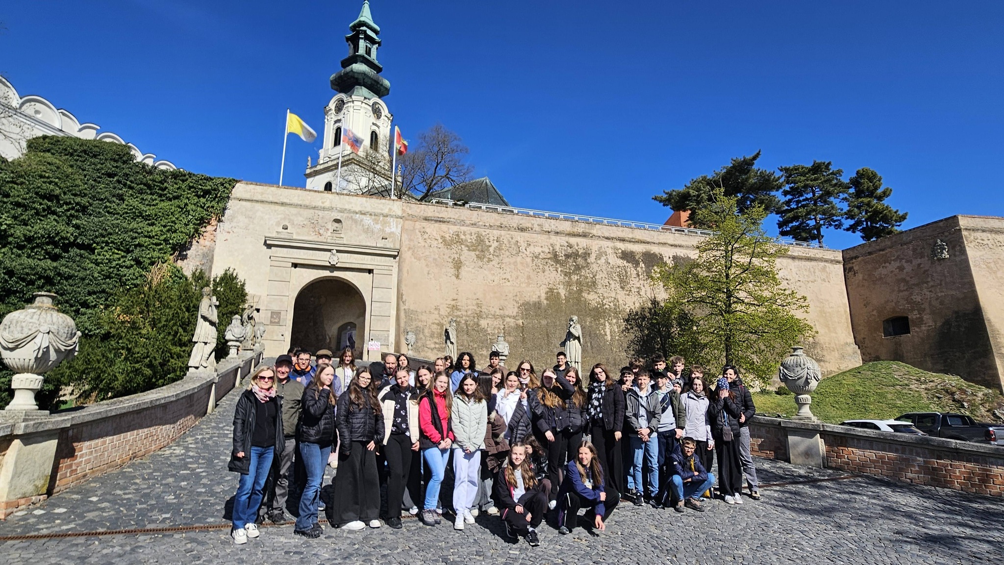 Ezt követően a magyar történelmi emlékekben bővelkedő Pozsonyba utaztunk. Elsőként a város szimbólumát, a Pozsonyi Várat tekintettük meg. Megtudtuk, hogy hosszú időn keresztül a korona-toronyban őrizték a magyar koronázási ékszereket. Ezután elsétáltunk a Szent Márton-dómhoz, más néven a koronázó templomhoz, ahol 11 uralkodónkat koronáztak királlyá. Rövid belvárosi séta után buszra szálltunk, és Szentgyörgy felé vettük az irányt.