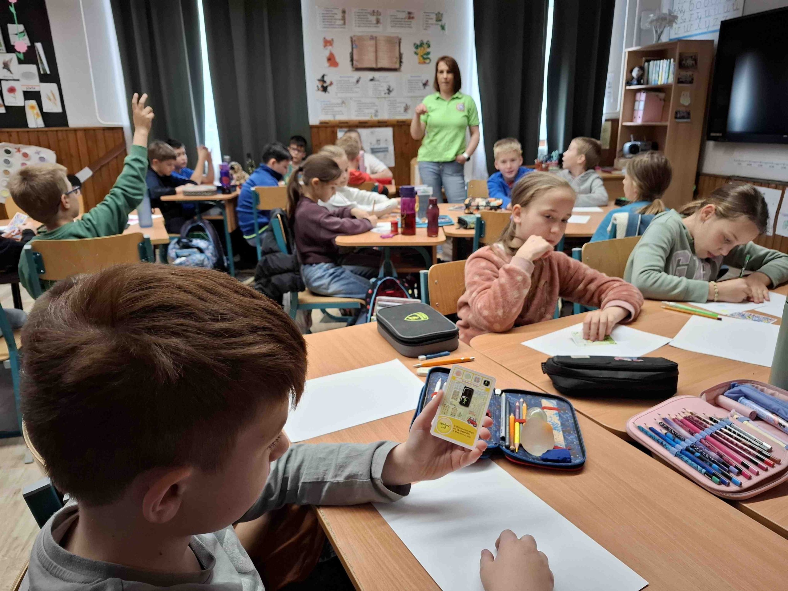 2026. április 13-án iskolánkban Marozsi Viktória r. törzszászlós tartott közlekedésbiztonsági, játékos foglalkozást a 4. évfolyam tanulói számára. Az óra során a gyermekek megismerkedtek a biztonságos közlekedéshez elengedhetetlen közlekedési táblákkal, közösen beszélgettek azok jelentéséről és szerepéről, majd játékos feladatokon keresztül gyakorolták a megszerzett ismereteket. A program hasznos és élményszerű módon járult hozzá a tanulók közlekedési ismereteinek bővítéséhez.