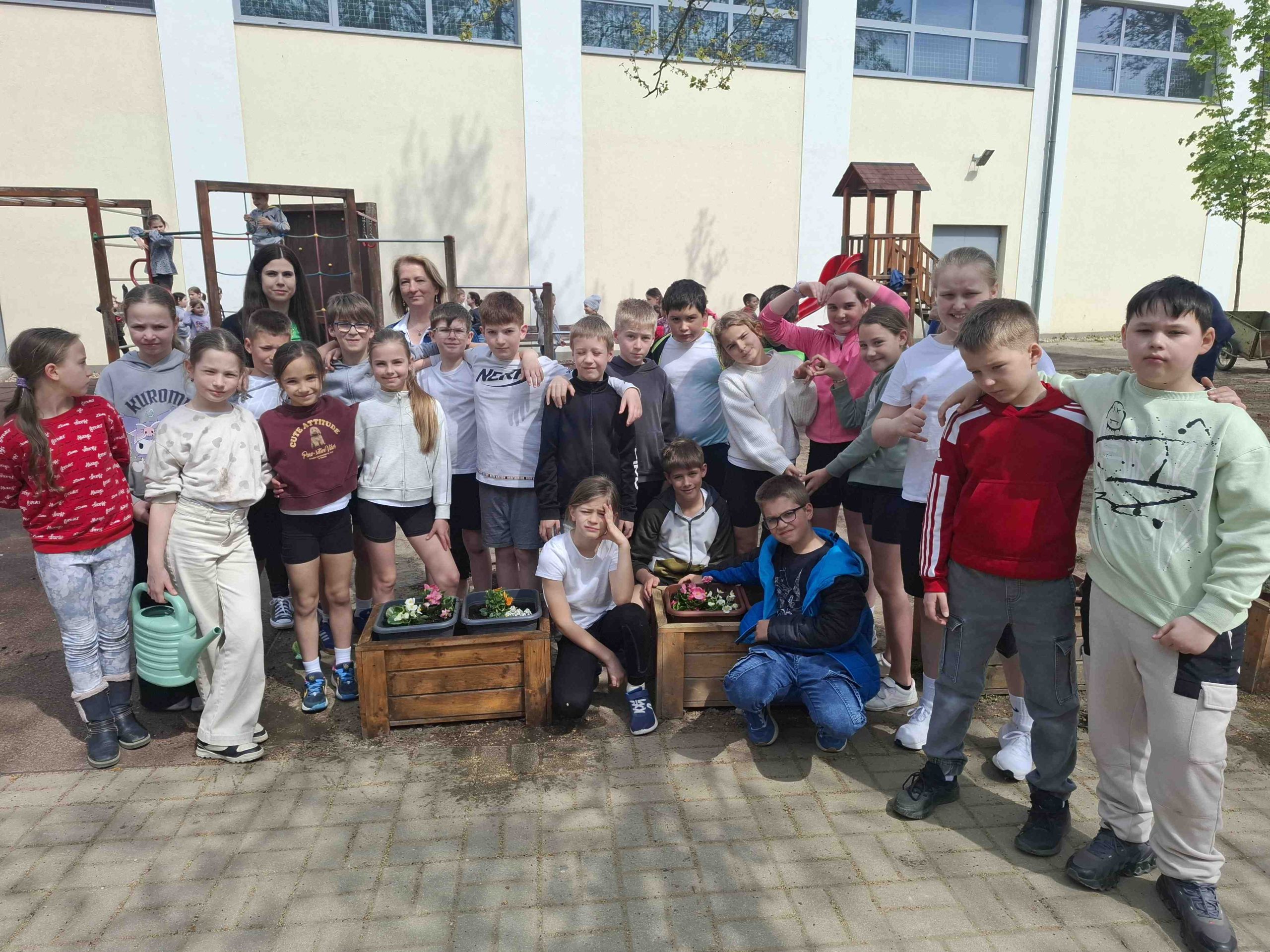 Az osztály tanulói hozzájárultak környezetük szebbé tételéhez is. Virágokat ültettek az iskola udvarára, ezáltal közvetlen tapasztalatot szereztek arról, hogy a fenntarthatóság a mindennapi cselekvésekben, a közösségi felelősségvállalásban és a természeti környezettudatos megóvásában valósul meg.