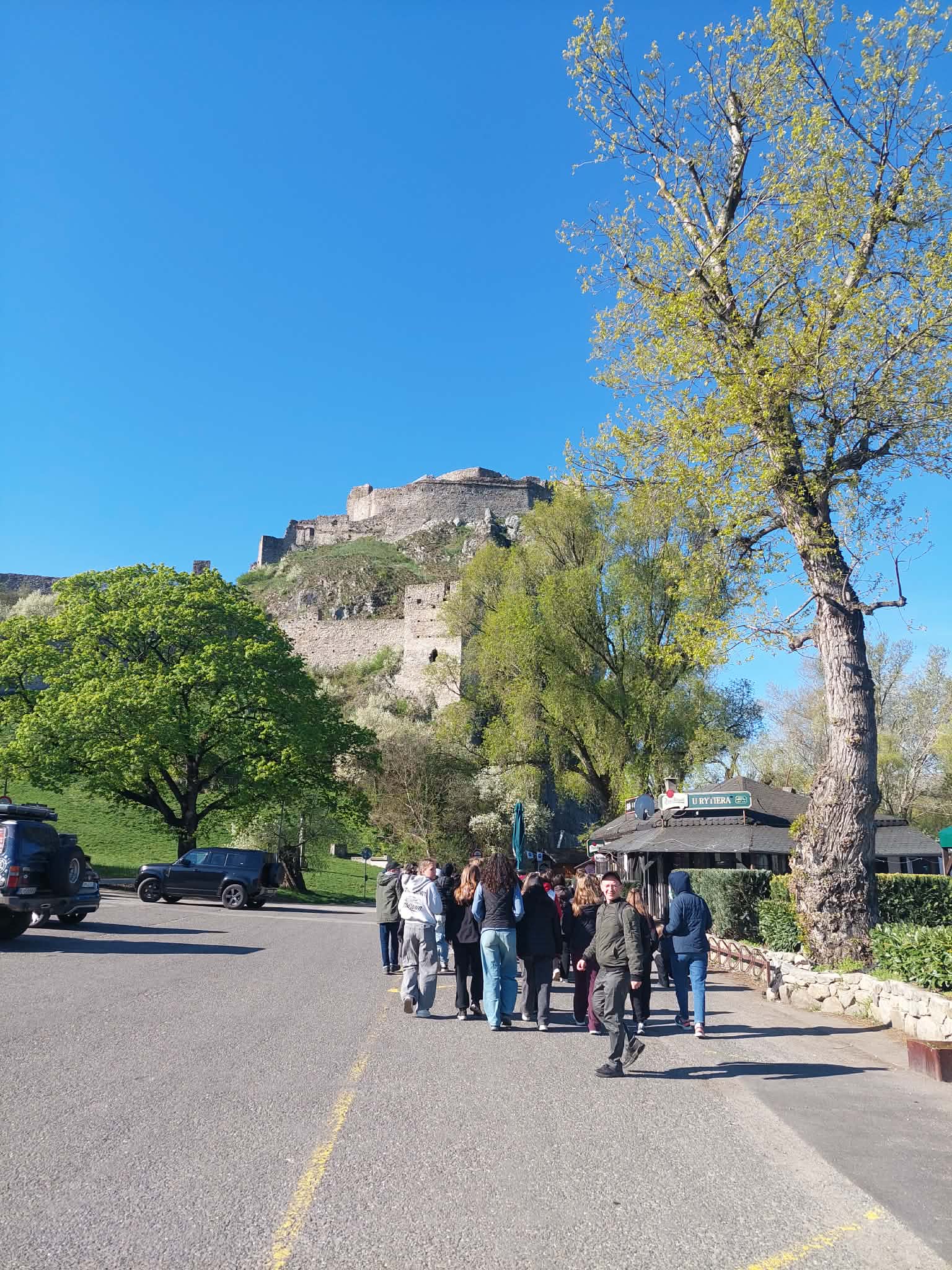Mai első úticélunk Dévény volt, mely a magyarság egyik fontos emlékhelye. Először a Duna és a Morva folyók összefolyása mellől tekintettük meg a Vasfüggöny Emlékművet: fájó emlékeztetőként, hogy a vasfüggöny évtizedekig elválasztotta egymástól Nyugat- és Kelet-Európa országait, és sokan életüket vesztették az Ausztriába való menekülés közben. Ezután tovább sétáltunk a várhegy Morva folyó felőli oldalában található magyar nyelvű emléktáblához, amelyet a Duna-szabályozás résztvevői állítottak a honalapításnak tisztelegve.
